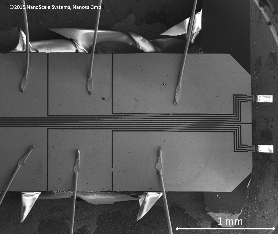 Für diagnostische Tests bietet nano3DSense weitere entscheidende Vorteile: mittels Multiplex-Arrays kann eine große Anzahl von Analyten, wie z.B. Proteine, DNA oder RNA, auf einen einzigen Mikro-Chip simultan verarbeitet werden. Im Hochdurchsatz, preisgünstig und ohne optische Geräte. Gleichzeitig wird nur noch ein sehr geringes Volumen des Analyten (z.B. Blutprobe) benötigt, um Ressourcen schonende Messungen zu ermöglichen.